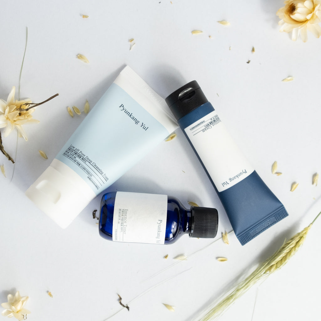 PyunKang Yul 3-step kit with astragalus, a plant with acne-fighting benefits.